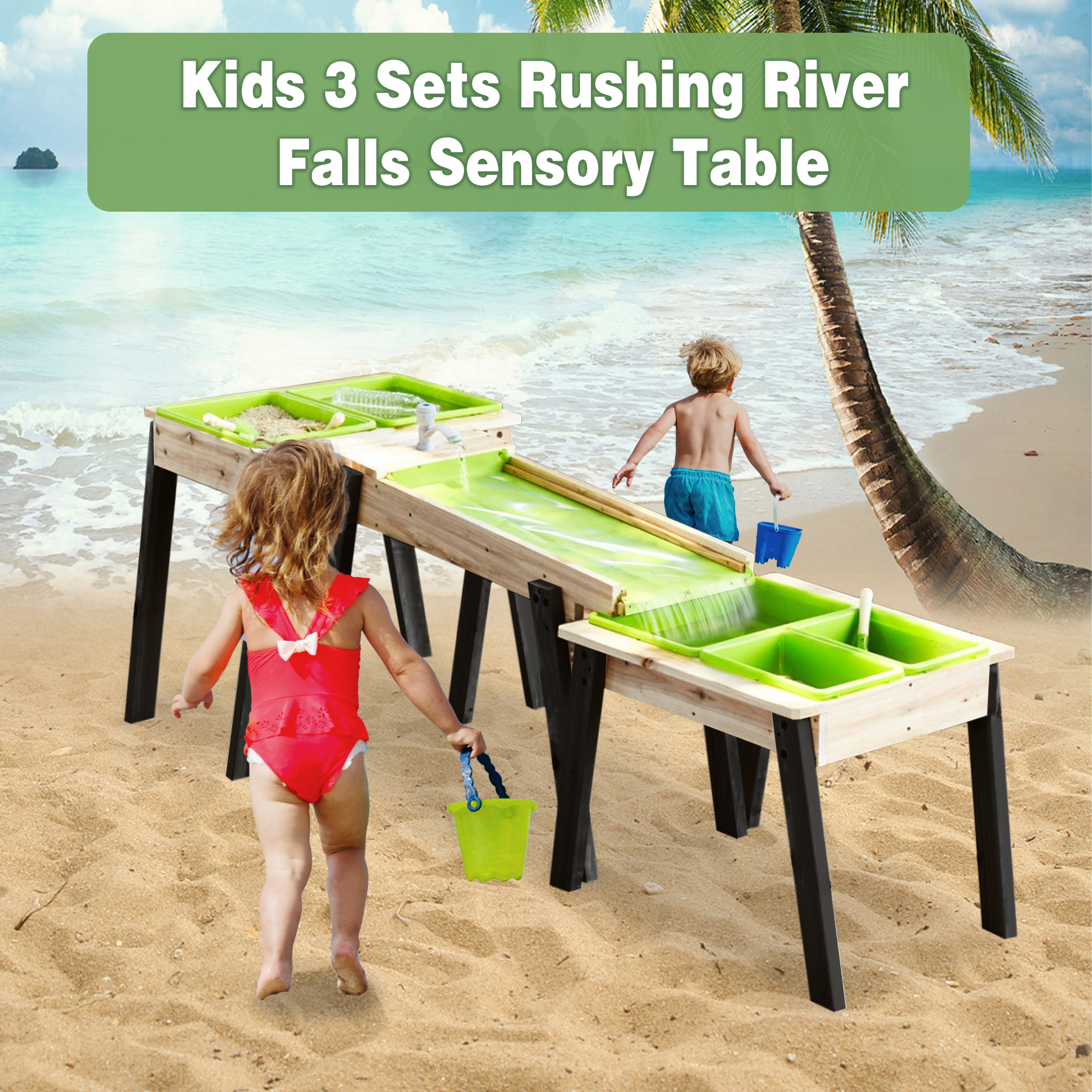 This isn't just a single table; it's a complete water-flow environment. The three-tiered design allows children to pour water from the top, watch it cascade down, and control the flow, creating a truly dynamic and engaging kids water play table experience.