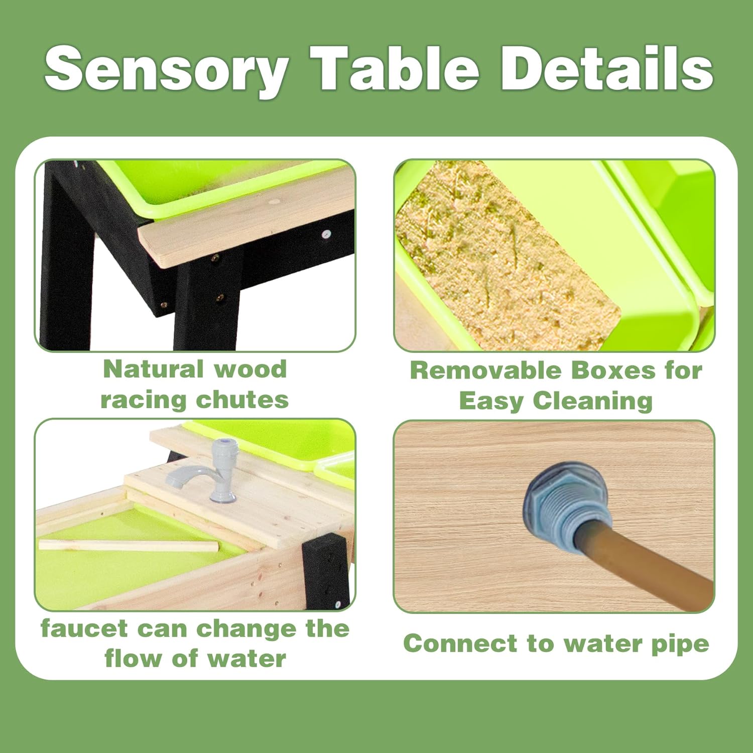 - ✔ Multiple removable tubs for water, sand, or sensory activities