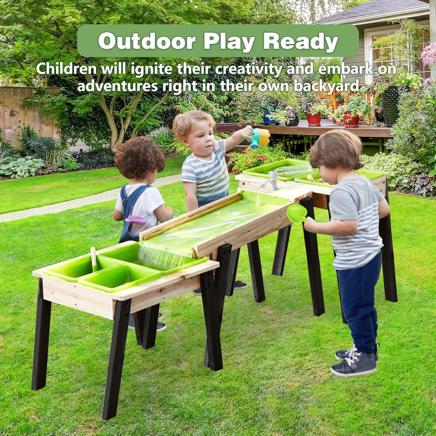 - ✔ 3 separate water play sections with cascading design